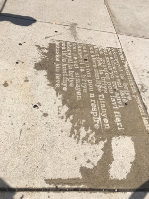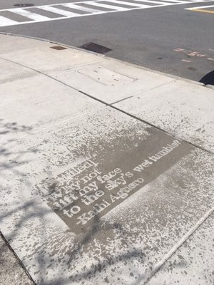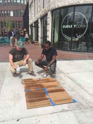Working with the Mayor’s Office of Arts and Culture and Boston’s Poet Laureate, Danielle Legros Georges, I implemented the Raining Poetry program beginning in 2016. Working with local poets and artists and using a water-repellent spray, I installed stenciled poems on city sidewalks throughout Boston in a handful of different languages that appeared only in the rain. The project was a huge success, with interest shown from countries around the world and a New York Magazine video featured on Facebook with over 24 million views.