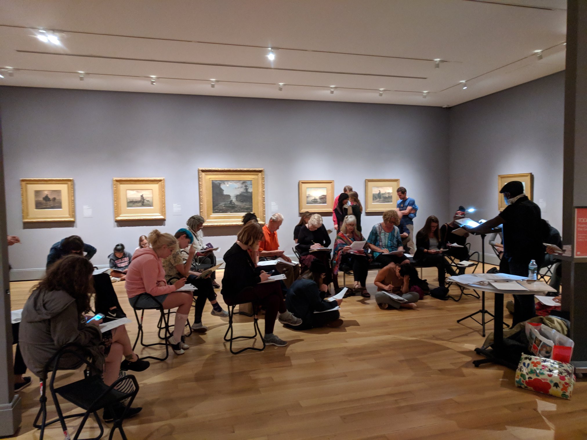 Working with Brooke DiGiovanni Evans from the Education Department at the Museum of Fine Arts, I hosted the MFA’s first ever writing in the galleries. Modeled after the drop in Drawing in the Galleries held on Wednesday evenings, the Writing in the Galleries Residency ran for three months in 2018. I recruited three poets to lead writing-generative workshops, each in a different exhibit, for four weeks. Workshops lasted two hours and were free to all museum attendees. We saw over 350 guests at the twelve workshops, including repeat visitors and visitors traveling from as far away as Vermont to take part. Feedback was overwhelmingly positive from attendees, poets, and the MFA, and we were able to showcase attendees’ poems on Facebook.